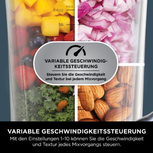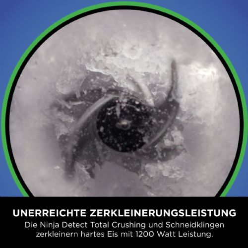 Vključeno v dostavo: 1200 W podnožje motorja, kozarec (2,1 L), 2 skodelici za eno serviranje (700 ml), rezilo Ninja Detect Total Crushing in rezilo, rezila Hybrid Edge, knjižica z recepti za navdih.