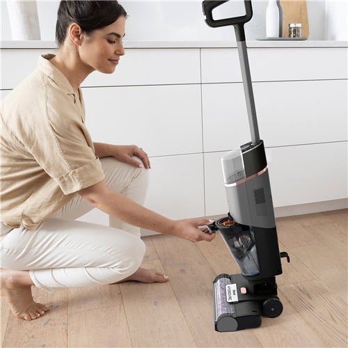 - Sesalnik bo samodejno prepoznal in preklopil med mokrim in suhim sesanjem glede na zaznano površino.