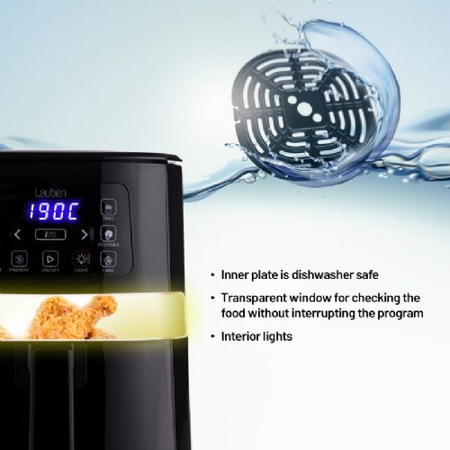 Upravljanje Lauben Air Fryer je intuitivno in ga lahko obvlada vsak. Želeni program nastavite na pomočjo tipk, na zaslonu pa lahko nadzirate temperaturo in čas priprave. S pomočjo prozornih vrat in osvetlitve notranjosti lahko jed enostavno nadzirate tudi vizualno. Vse dele, ki ste jih med pripravo jedi umazali, lahko pomijete v pomivalnem stroju. Pika na je lep minimalističen dizajn, zahvaljujoč njemu imate lahko cvrtnik brez strahu ves čas na delovnem pultu, četudi ste obremenjeni z estetiko.