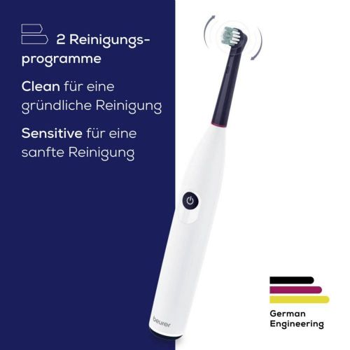 Naprava deluje na eno priloženo AA baterijo, kar pomeni, da vam ni treba skrbeti za polnilce ali omejen čas uporabe. Preprost vklop in upravljanje omogočata, da je ščetka odlična tudi za jutranje hitenje, večerne rutine ali praktično uporabo na poti. Glava z mehkim vlakni čistilno in nežno masira dlesni, povsem primerna je tudi za občutljive zobe.