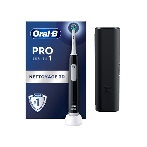 Električna zobna ščetka Oral-B Pro 1 Cross Action, s potovalnim eutijem, črna