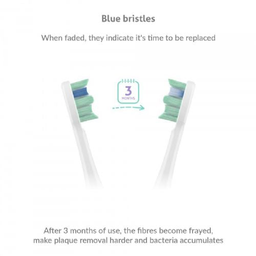 Životni vijek glave četkice je oko 3 mjeseca, a plava vlakna postupno postaju bijela, što ukazuje na potrebu zamjene.