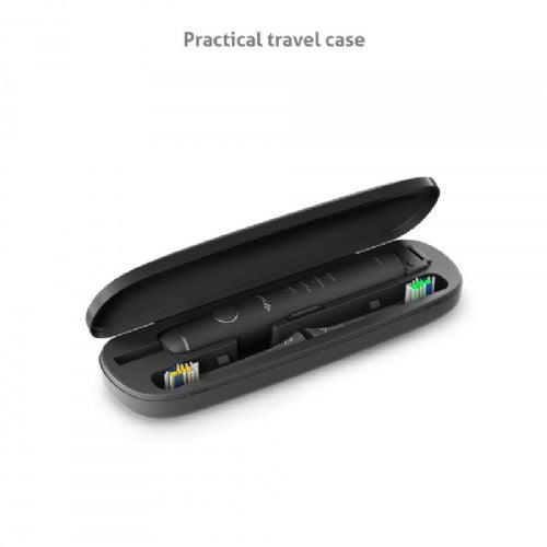 Zdravi zobje in dlesni? Zanesite se tudi vi na ščetko SonicBrush Compact z moderno sonično tehnologijo SonicTrue®. Zahvaljujoč njej bo vaš nasmeh sijoč, škodljive bakterije pa ne bodo imele nobene priložnosti. Ščetine ščetke oscilirajo z visoko hitrostjo do 70.000 gibov na minuto in z vsakim gibom maksimalno odstranijo zobne obloge. Izbirate lahko med štirimi načini čiščenja. Ščetka je kompaktnih dimenzij in jo lahko zahvaljujoč praktičnemu potovalnemu etuiju vzamete s seboj kamorkoli. Baterija zdrži dolgih 30 dni. Embalaža vsebuje sonično ščetko, polnilno postajo, tri nadomestne glave (Sensitive, Standard, Whiten) in potovalni etui.