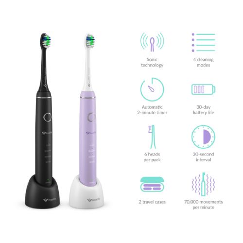 Električna zobna ščetka TrueLife SonicBrush Compact Duo Black / Lavender, 70.000 gibov/min, 4 načini, 30 dni baterije