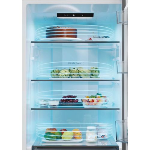 Prostostoječi hladilnik Candy ECN2CQTEB186 iz linije Fresco 300 je zasnovan za sodobna gospodinjstva, ki želijo dolgotrajno svežino živil, veliko prostornino in enostavno vzdrževanje. Napredna tehnologija Total No Frost preprečuje nastajanje ledu in zmrzali v hladilnem in zamrzovalnem delu, medtem ko sistem kroženja zraka Circle Fresh zagotavlja enakomerno temperaturo in optimalno raven vlažnosti na vseh policah. Zaradi pregledne notranjosti, tihega delovanja in spodnjega zamrzovalnika je hladilnik primeren za vsakodnevno uporabo v družinskem okolju.