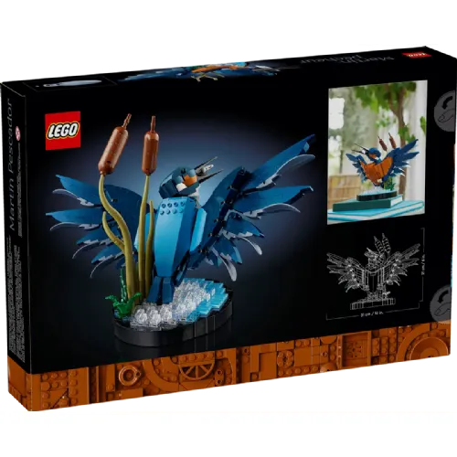 Ustvari izjemen namizni okras za dom ali pisarno s tem kompletom za sestavljanje okrasja za odrasle. Ta komplet LEGO® Ikone Rečni vodomec (10331) je odlično darilo za ljubitelje ptic in imerzivni projekt za nove in uspešne LEGO® sestavljavce. Model rečnega vodomca upodablja ptico, znano po čudovitem perju in izjemni lovski spretnosti, ki se dviguje iz vode z ujeto ribo. Vodno okolje vključuje sestavljive trstike in je hkrati razstavno stojalo. Postavi ptičjo glavo in kremplje v priljubljeno pozo,  nato pa stvaritev postavi na ogled, da bodo vsi uživali v njej. Odkrij prostor za sprostitev z navdihujočo zbirko LEGO® kompletov za ustvarjalno sestavljanje, načrtovanih prav za odrasle. Kompletu je priložena digitalna različica navodil za sestavljanje v aplikaciji LEGO® Builder.