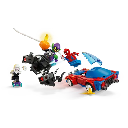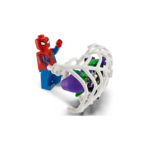 Spider-Man, Ghost-Spider in Venom Green Goblin sodelujejo v hitro premikajočih se bitkah z uporabo osupljivega izbora vozil, orožja in dodatkov. Spider-Manov avto ima 2 sprednji streli, Jadralno letalo Green Goblin ima 2 streli in nosi bučne bombe, Ghost-Spider pa uporablja 2 ročna razstreljevalnika mreže, ko vozi svojo rolko. Spider-Man niha na prožni mreži in uporablja veliko, upogljivo mrežo, da ujame zlikovce. Odstranljivi deli omogočajo dostop do notranjosti avtomobila, ki je dovolj velika, da sprejme 2 minifiguri in rolko. Za dodatno digitalno zabavo lahko gradbeniki povečajo, vrtijo modele v 3D in spremljajo njihov napredek z zabavno in intuitivno aplikacijo LEGO Builder.