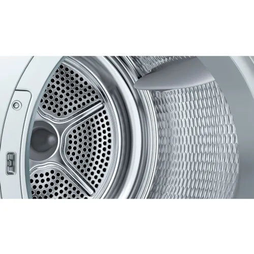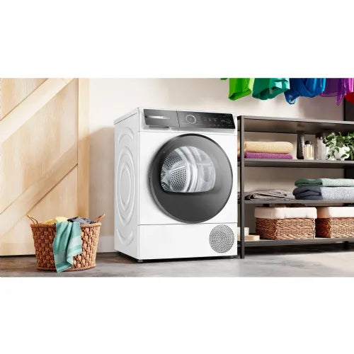 Bosch WQB245B40 Series 8 je visokokakovosten kondenzacijski sušilni stroj s toplotno črpalko z nazivno zmogljivostjo 9 kg bombaža in razredom energijske učinkovitosti A+++. Ponuja številne funkcije, kot so samodejna funkcija, združljivost s SmartHome prek aplikacije Home Connect in časovni zamik vklopa. Sušilni stroj ima različne programe za različne materiale ter funkcijo polovične polnitve. Struktura bobna zagotavlja nežno ravnanje z vašim perilom, notranja osvetlitev pa olajša polnjenje in praznjenje.