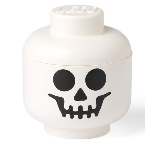 LEGO Glava za shranjevanje "Okostnjak" je širitev glave legendarne LEGO minifigure. Uporablja se lahko za shranjevanje LEGO opeke, drugih ali celo sadja. Ikonska glava za shranjevanje.