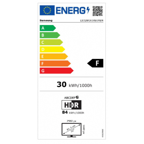 Monitor Samsung S32BG650EU G6 81,28 cm (32"), VA, 16:9, 1ms, 350cd/m2 2560x1440, DP, HDMI, USB Hub, Wi-Fi,BT LS32BG650EUXEN 94128886