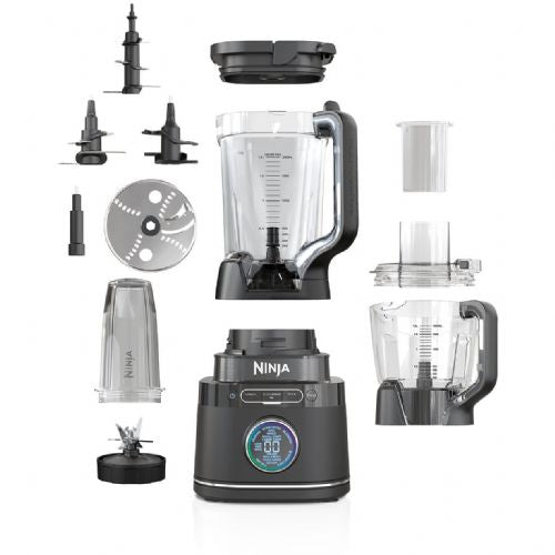 Vključeno v dostavo: podstavek z motorjem 1200 W, kozarec (2,1 l), posoda kuhinjskega robota (1,8 l), 3 skodelice za eno porcijo (700 ml), rezilo Ninja Detect Total Crushing and Slicing Blade, kavelj za testo, rezilo za rezanje/ribanje, rezilo Hybrid Edge in knjižica z recepti.
