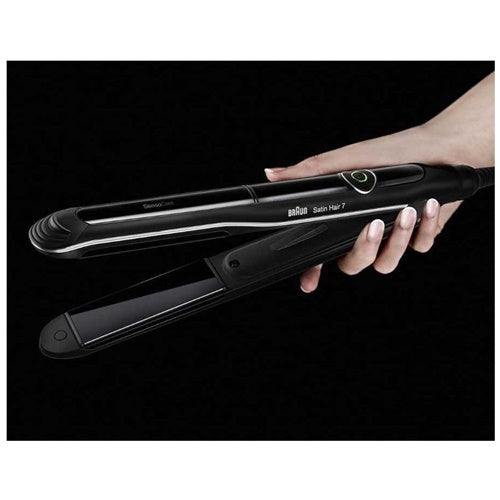 Likalnik za lase Braun Satin Hair 7 ST780 omogoča dolgotrajne rezultate oblikovanja ter zdrav videz in sijoče lase. S svojo tehnologijo SensoCare zazna vsebnost vlage v vsakem pramenu las in samodejno prilagodi temperaturo od linije las do konice – za popolno toplotno zaščito. Keramične plošče NanoGlide Satin Hair 7 ST780 drsijo po laseh trikrat bolj gladko kot običajne plošče, mobilnost plošč pa zagotavlja enakomerno porazdelitev pritiska za preprečevanje poškodb las.