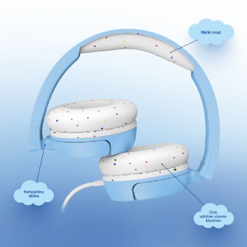 Otroške slušalke LAMAX SoundKid1, 85/94 dB, 40 mm gonilniki, SafeSound2.0, mikrofon, 3,5 mm priklop, modre