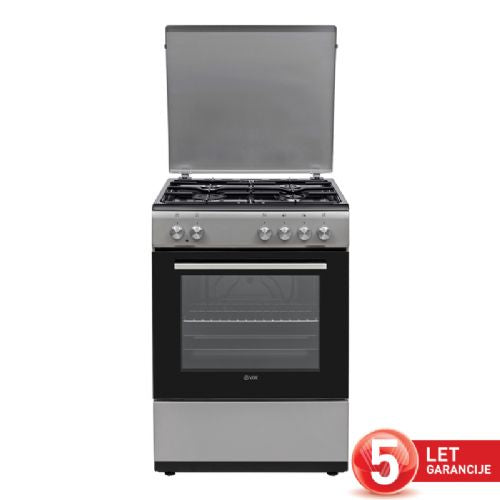 Plinski štedilnik Vox GHB 6400 S, razred A, 4 x plin, pečica 72 l, srebrne barve