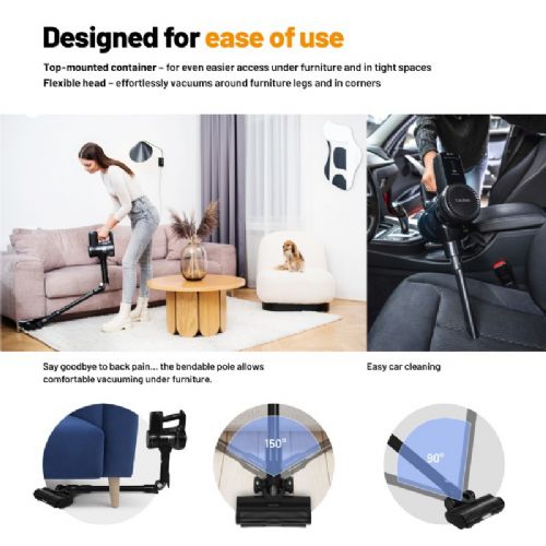 - 2-v-1 zasnova: Lahko se uporablja kot pokončni ali ročni sesalnik za čiščenje različnih površin