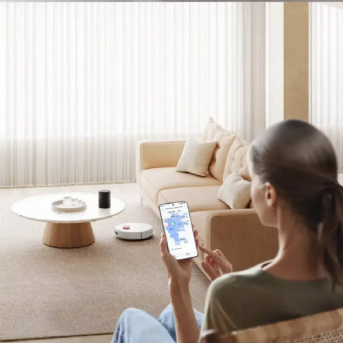 Nadgradnja uporabniške izkušnje pride z upravljanjem prek aplikacije – s pametnim telefonom si lahko nastavite urnik čiščenja, določite cone ali omejitve in spremljate napredek v realnem času, tudi ko vas ni doma. Prav tako robot z nizko višino zlahka posesa pod kavčem ali posteljo, kamor običajni sesalci ne pridejo.