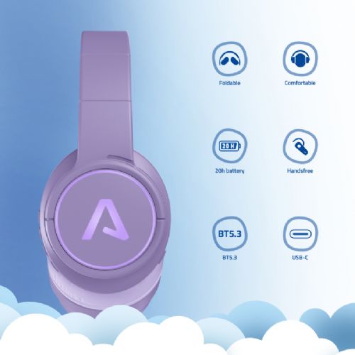 Slušalke Lamax GlowKid1, Bluetooth 5.3, LED osvetlitev, 37 h avtonomije, vijolične
