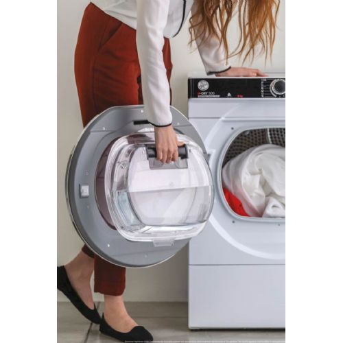Hoover sušilica iz linije H-DRY 500 Professional - NDPEH9A3TCBEXS-S može se pohvaliti inovativnim Infinity Silent bubnjem, koji omogućuje tiho i nježno sušenje vašeg rublja, te toplinskom pumpom. S kapacitetom sušenja od 9 kg i 15 različitih programa, sušilica s lakoćom ispunjava sva vaša očekivanja. Osim klasičnog načina upravljanja, ima upravljanje putem aplikacije hOn, koja nudi više od 20 dodatnih programa za sve vrste tkanina i ekskluzivnu funkciju Scan to Care, pomoću koje možete kreirati vlastiti virtualni ormar, a aplikacija predlaže najprikladniji program za njegu vaše odjeće. Praktična posuda za skupljanje vode na vratima ergonomski je dizajnirana za lakše ulijevanje, a po želji vodu možete spojiti izravno na odvod. Hoover nudi mogućnost produljenja jamstva na ukupno 5 godina, uz registraciju u roku od 14 dana od kupnje. Registrirajte svoj uređaj na web stranici: https://www2.hoover.si/jamstvo/.