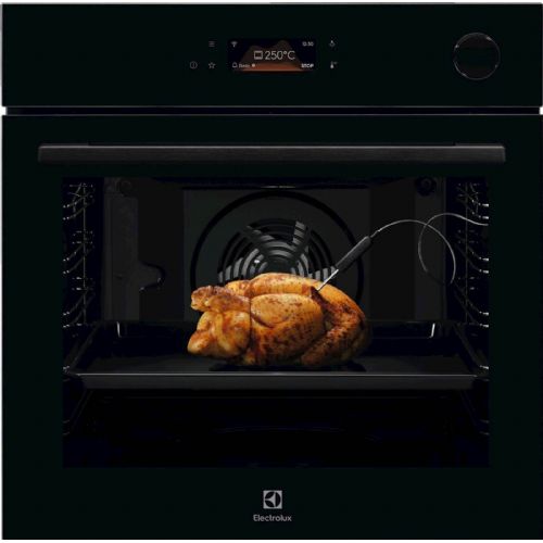 Čas je, da raziščete moč pare s pomočjo pečice 700 SteamCrisp®. V postopek pečenja vstopi para, kar pomeni, da se hrana pripravi pri nižjih temperaturah in se ne posuši. Hrana bo bolj okusna zaradi hrustljave zunanjosti in sočne notranjosti. Ohranjanje pečice kot nove ni težko z našo pametno funkcijo pirolitičnega čiščenja. Ta sistem samodejnega čiščenja segreje pečico do temperature, ki spremeni ostanke maščobe in druge ostanke v pepel. To pomeni, da morate dno samo obrisati. Niti enega dneva več ne boste porabili za drgnjenje. Zahvaljujoč našemu tipalu za jedi lahko vsakokrat dosežete popolne rezultate. Omogoča vam nadzorovati postopek pečenja z merjenjem temperature jedra hrane. Opomni vas celo, ko se hrana speče na želeno temperaturo, in ustavi pečenje. Z aplikacijo My Electrolux Kitchen daljinsko upravljajte s pečico, odkrivajte naše različne partnerje in uživajte v osebno prilagojeni izkušnji kuhanja. Je priročen in enostaven način, da obogatite vašo izkušnjo pametne kuhinje. S prikazovalnikom EXCite na dotik lahko enostavno nastavite temperaturo in časovnik za pečico in pripravite vse, od muffinov do lososa. Zagotavlja potrebno tehnologijo in pomoč za pripravo slastnih jedi po vaših željah.