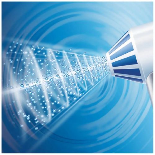 Oralni irigator Oral-B Oxyjet uporablja tehnologijo mikro mehurčkov za boj proti bakterijam, ki povzročajo zobne obloge.