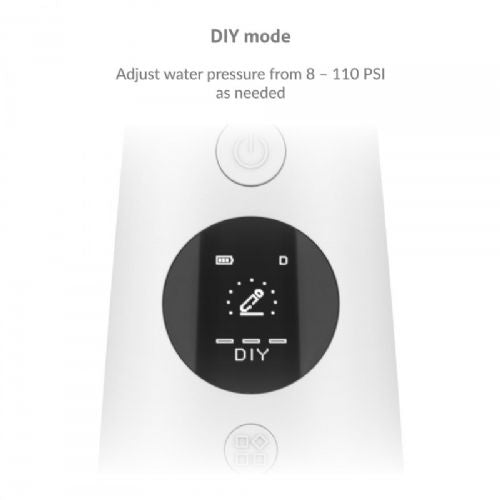 S pomočjo funkcije DIY lahko nastavite intenzivnost tlaka vode točno po svojih želja, in sicer v razponu 8–110 PSI. Sestavni del prhe je šest posebnih šob (3× Standard, 1× Orthodontic, 1× Periodontal, 1× Dental Plaque), zasnovanih za različne potrebe: